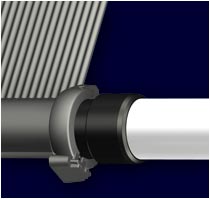Other manufacturers use rubber hoses and metal clamps to connect their panels together. In our solar pool heating system we have the world's only patented panel connector, the Plastic Panel Clamp. Rubber hoses require maintenance every six months and are prone to leaks. Metal clamps rust and stain the roof. Heliocol's Plastic Panel Clamps never need maintenance, never rust and are guaranteed to never leak! | ||